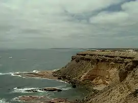 Point Labatt and the adjoining cliff line consists of a calcarenite known as the Bridgewater formation overlying a red granite known as the Hiltaba Suite. The cliff top are finished with a soil consisting generally of a thin layer of calcareous material.[1] The water adjoining the base of Point Labatt drops to a depth of 50 metres (160 feet) within a distance of 300 metres (980 feet) of its shore.[3]