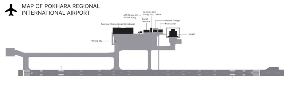 The map of Pokhara International Airport with its facilities labelled.