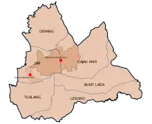 The Pokok Sena District is a district and parliamentary constituency in Kedah, Malaysia. It is the 12th district of Kedah which was formerly a subdistrict of Kota Setar, about 20 km east of Alor Setar. The declaration of the 24,000ha district with a population of 50,000 was made by the Sultan of Kedah, Tuanku Abdul Halim Mu'adzam Shah in conjunction with his 81st birthday celebrations in January 2009 (also in commemorating the golden jubilee anniversary of his reign from 1958-2008). The district is divided into 6 sub-districts: Gajah Mati, Jabi, Tualang, Lesong, Bukit Lada, Derang and consists of 122 villages and 21 residential areas. The Pokok Sena district lies within the boundaries of the Alor Setar City Council (Majlis Bandaraya Alor Setar) local government area authority.