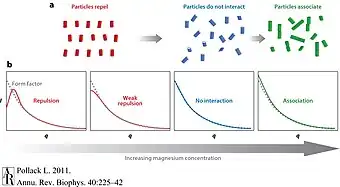 - ↑ Pollack, Lois (2011-01-01). "SAXS Studies of Ion–Nucleic Acid Interactions". Annual Review of Biophysics. 40 (1): 225–242. doi:10.1146/annurev-biophys-042910-155349. PMID 21332357.