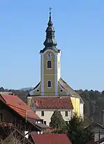 The local parish church, built on the southeastern edge of the settlement, is dedicated to Saint Martin and belongs to the Roman Catholic Diocese of Celje. It was built between 1732 and 1737.[5]