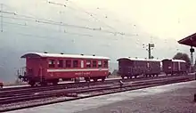 The Pont–Vallorbe Railway (Chemin de fer Pont–Vallorbe; PV) opened the railway line between Vallorbe and Le Pont on 31 October 1886.[3] As a result, the PBr was founded to extend the branch line further into the Vallée de Joux. Traffic between Le Pont and Le Brassus was started on 21 August 1899. The PBr had only passenger cars and freight wagons, but none of its own locomotives. So operations were carried out from the beginning by the JS and after its nationalisation on 1 May 1903 by the SBB.