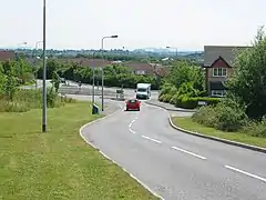 ![]() Heol Glandulais runs through the centre of Pontprennau. The large buildings near the horizon are the CELSA Group Steelworks; between them is the island of Steep Holm. On the left horizon is Brean Down in Somerset | |