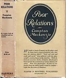 Poor Relations is a 1919 comedy novel by the British writer Compton Mackenzie. In contrast to his grimmer Sylvia and Michael, published the same year, the story was a light-hearted comedy about the ups-and-downs of playwright.[1]