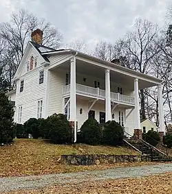 Poplar Hill is a historic plantation house in Hillsborough, North Carolina. The home was the center of a large plantation, formerly called Occoneechee Farm and Banks of the Eno. Established on farming and hunting grounds for the Occaneechi and Saponi peoples, the land was granted to colonist Francis Corbin by the English and made into a working plantation. Ownership later passed to the Hogg family before the farm was purchased in 1891 by tobacco industrialist and white supremacist Julian Carr. Carr and his wife had the original 1794 plain farmhouse redone in the Greek Revival style. After Carr's death, the house was moved from its original location to a new lot in the Hillsborough Historic District. Poplar Hill later became a rental property and, in the twenty-first century, many tenants, including the singer Tom Maxwell, have broken their leases due to reported hauntings on the property.