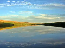 The East Poplar River begins south of Willow Bunch, Saskatchewan and flows south out of the hills and meets the Poplar River in Montana upstream from where the West Poplar River meets it.[7] Along the course of the East Poplar River, on the Canadian side of the border, is Poplar River Power Station, which is a coal fired station owned by SaskPower. Morrison Dam was built along the river in 1977 to provide cooling water for the station.[8] Girard Creek, which originates at Fife Lake, and East Poplar River are the primary inflows for the Morrison Dam Reservoir.