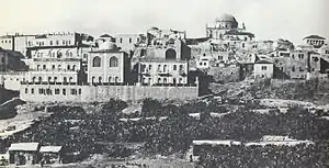 The cornerstone for Porat Yosef Yeshiva was laid in Jerusalem's Old City in 1914.[2] Yosef Shalom, a Baghdadi philanthropist from Calcutta, India, originally bought the site overlooking the Temple Mount with the intention of building a hospital. When he wrote to the Ben Ish Chai of Baghdad for his opinion, the sage persuaded him to endow a yeshiva instead.[2][3]
