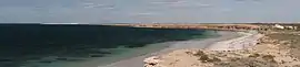 Port Gibbon consists of land on the coastline with Spencer Gulf which extends from a headland called Point Gibbon (formerly Point Price) in the south for a distance of about 5 kilometres (3.1 mi) along the southern end of an unnamed bay whose northern end terminates at a headland called The Knob in the adjoining locality of Cowell. The coastline consists of a series of beaches backing onto a cliff line of “red bluffs composed of Pleistocene alluvium” with heights up to 10 metres (33 ft). A settlement is located at the middle of the bay behind the cliff line. A road runs along the coast both south and north of the settlement.[12][13][14]