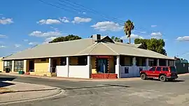The township of Port Kenny was surveyed in 1912, with Governor Bosanquet naming the town after a local landholder, Michael Kenny.[2] The town grew slightly with the help of the pub, before the hotel began operation in 1939. But the town was pivotal in handling the grain and wool which was produced in the hinterland, with grain still being shipped from Port Kenny until the 2000s.[3]