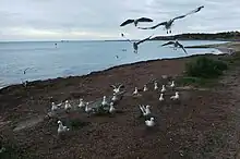 A popular site for visitors is Granite Island, which is connected to the mainland by a short tram/pedestrian causeway. The tram service is provided by the Victor Harbor Horse Drawn Tram, one of the very few horse-drawn tram routes remaining in public transit service. Granite island is home to a large colony of little penguins which are a popular attraction on the island. These penguins shelter on the island during the night, departing in the morning to hunt for fish before returning at sunset. Sadly this colony of penguins is now almost gone. At the last count in 2012, only seven were found. It is suspected that an increase in long-nosed fur seals in the area may be to blame, however incidents such as those in 1998 where locals apparently kicked several of them to death have also contributed.[25]