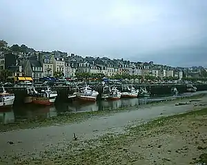 The docks of Trouville constitute a district within the city. It is situated on the River Touques, along the Boulevard Fernand Moureaux and downstream from the Pont des Belges. The main building on the docks is the fish market (marché aux poissons).