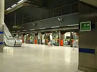 The Jubilee line is a line on the London Underground, coloured silver grey on the Tube map. The line opened on 1 May 1979, taking over one of the Bakerloo line's two branches to relieve congestion on their common portion. The Baker Street to Stanmore branch was joined to a new four-kilometre segment into central London, terminating at a new station at Charing Cross. The new station was created by amalgamating Strand on the Northern line and Trafalgar Square on the Bakerloo.