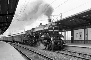 Preserved kkStB 310.23 with a Christmas special train passing Traisengasse station in Vienna, Austria, in 1995.