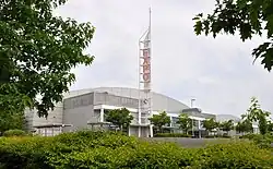 From May 2 to September 10, 1942, the center suspended livestock exposition operations and served as a Civilian Assembly Center under President Roosevelt's Executive Order 9066, which authorized the eviction and confinement of Japanese Americans living on the West Coast during World War II. 3,676 people of Japanese descent were confined in the hastily converted animal corrals for a period of five months, while they awaited transfer to more permanent camps in California, Idaho and Wyoming.[5][6] Torii Gate, an installation piece by Portland artist Valerie Otani, acts as a memorial honoring the people held at the Portland Assembly Center in 1942.[7]