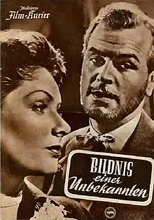Portrait of an Unknown Woman (German: Bildnis einer Unbekannten) is a 1954 West German comedy film directed by Helmut Käutner and starring Ruth Leuwerik, O. W. Fischer and Irene von Meyendorff.[1][2][3] It was shot at the Bavaria Studios in Munich and on location in Madrid and Paris. The film's sets were designed by the art directors Ludwig Reiber and Max Seefelder.