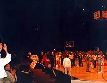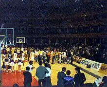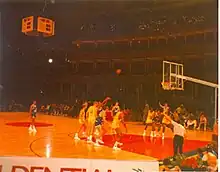 Portsmouth had to borrow Kingston's red kit as they only had a white strip available and league rules at the time insisted that away teams wore white.[8] The court was less than half full of spectators and the match did little to create an atmosphere, with Portsmouth trailing 20–8 after five minutes and 51–34 at half-time before finally losing 115–72.[1] Again the Americans led the scoring, Shackleford netting 31 points and Owen 22, with nobody else in double figures for Portsmouth.