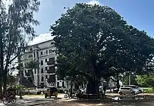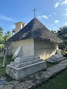 The graveyard began to be used again when James Bell Smith was buried there following his murder on 1 September 1894.[10] Bell Smith was the first resident administrator for the Imperial British East Africa Company which occupied Malindi between 1890 and 1895. Thereafter, the graveyard was used for burials occasionally until 1958. One such late burial of a European followed an accident at sea.[11] Several are infant burials.[12] Several gravestones appear to be of stock design, and probably later than the burial they mark, whereas others, including that of Sir Pyers Edward Joseph Mostyn of Talacre, bt. (d. 1955) are clearly bespoke.[13] This graveyard was once shaded by large trees and may have been larger than is seen today. It is recorded that a Baobab tree was planted on the Portuguese graveyard. This may be the large tree opposite the chapel, which was once in the Chapel compound.[2]