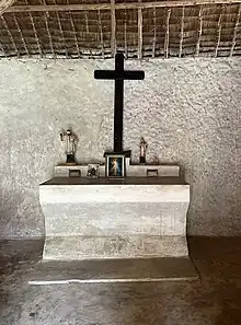 After the Portuguese departed in 1593, the history of the chapel is obscure. During the 17th and 18th centuries, Malindi declined and nearly disappeared, being described as ruined and deserted. The Chapel itself may have been a ruin at various times and no history can be ascribed to it for nearly 300 years.[2] It is unclear how much of the current fabric is original. James Kirkman, an archaeologist working in the mid-twentieth century, refers only to the 'remains' of the chapel, but writes that a painting of the crucifixion was then still faintly visible on an interior wall at the south-west corner of the chapel.[9] The traditional makuti roof (palm leaf thatch) is an obvious and necessary modern restoration.