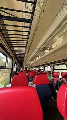 The current rolling stock consists of two-carriage diesel-hydraulic railcars originally called "Wadloper", built between 1981 and 1983 by German company Duewag for the Dutch railway company Nederlandse Spoorwegen,[1] and have a capacity to carry 250 people. Those railcars had been previously used in the binational service Tren de los Pueblos Libres that joined Argentina and Uruguay,[5] having been active only for one year.[6]