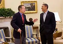 53. "Elder Bush says Obama will face tough job". UPI. November 17, 2008. Retrieved December 1, 2018.