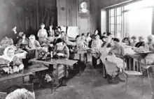 During the 1920s a number of immigrants from a Russia religious sect, the Molokans, had settled in Potrero Hill after they fled Czarist persecution in the Volga and Caucasus regions.[7][2][4] Rev. William E. Parker, Jr., a pastor of the Olivet Presbyterian Church (located at Missouri and 19th Streets), was concerned about the needs of the community and brought the issue to the San Francisco Presbytery leaders.[4] In 1919, the California Synodical Society of Home Mission, Inc., a group of women affiliated with the Presbyterian Church made Potrero Hill their first unit of Christian social service by offering adult education courses to the new immigrants.[3] The Molokans were able to learned English, sewing machine skills, and other skills at the Potrero Hill Neighborhood House.[2]