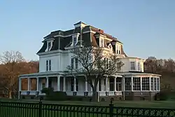 The Potter Estate is a historic estate at 65-71 Walnut Park in Newton, Massachusetts. The centerpiece of the estate is a large Second Empire mansion house which was constructed in 1867 by John Potter, Jr., a shoe and leather businessman. It has a mansard roof characteristic of the style, bracketed eaves, and a single-story wraparound porch that is a later Colonial Revival addition. The estate includes several outbuildings dating to Potter's time, including a carriage house and gardener's cottage; the estate also has period cast iron fencing.[2]