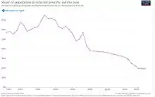 The African country of Ethiopia has made massive strides towards alleviating poverty since 2000 when it was assessed that their poverty rate was one of the greatest among all other countries.[1] The country has made great strides in different areas of the Millennium Development Goals including eradicating various diseases and decreasing the rate of child mortality.[1] Despite these improvements, poverty is still extremely high within the country.[1] One of the leading factors in driving down poverty was the expansion of the agricultural sector.[1] Poor farmers have been able to set higher food prices to increase their sales and revenue, but this expansion has come at a cost to the poorest citizens of the country, as they could not afford the higher priced food.[1] One of the biggest challenges to alleviating this issue is changing the structure of Ethiopia's economy from an agricultural-based economy to a more industry-based economy.[1] The current strategy for addressing poverty in Ethiopia is by building on existing government systems and development programs that are already in place within the country.[2]