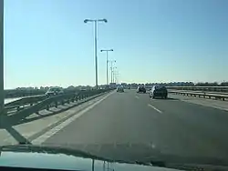 Today, the bridge suffers from heavy traffic because it is a route for many commuters from Petržalka, and due to the lack of an outer circle around the city it is also a route for transfer traffic. The situation improved slightly after the opening of the nearby Apollo Bridge in 2005. Traffic jams are common around the bridge and they occur regularly at the end of each week and after traffic accidents.[1] The bridge was built to handle around 60,000 vehicles/day, but current traffic consists of around 120,000 vehicles/day and it is rising.