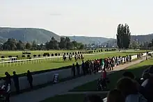 The Prague-Velká Chuchle Racecourse is a racetrack where canter and harness horse racing is held. It is located on the southern outskirts of Prague, in the administrational district of Velká Chuchle. Races are held there from April to mid-November. The track measures 2180m in length.[1]