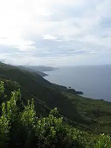 The parish has very rough topography with slopes oriented NW-SE which connect the low, coastal plain lands with the high, inland Achada Plateau reaching 881 m (2,890 ft) on Cabeço do Mistério. The territory is part of the Volcanic Complex of São Roque-Piedade. The Mistério da Prainha, a formation made up of lava flows emitted by a historic eruption above the parish (1562-1564), occupies the extreme west of it. This latter area, extends from the coast to the interior, and is characterized by its high fajã and massive lava delta along the northern coast (equally divided between Prainha and São Roque). This zone also pertains to the Recreational Forest Reserve of Prainha.[4]