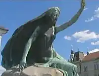 The Prešeren Monument in Ljubljana (Slovene: Prešernov spomenik), also Prešeren Statue in Ljubljana, is a late Historicist bronze statue of the Slovene national poet France Prešeren in Ljubljana, the capital of Slovenia.[1] It stands in the eastern side of Prešeren Square, in front of the Central Pharmacy Building in Ljubljana, the capital of Slovenia. It is among the best-known Slovenian monuments.[2]