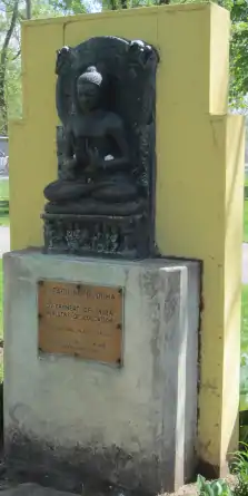The bronze bas-relief, which depicts Buddha on a lotus blossom, is set within a concrete base. Dedicated in 1965, the artwork measures approximately 35 x 18 x 7 in. A nearby plaque reads: "PREACHING BUDDHA / PRESENTED BY / GOVERNMENT OF INDIA / MINISTRY OF EDUCATION / TO / INTERNATIONAL PEACE GARDENS / BY / CONSUL GENERAL, P. N. MENON / DEDICATED APRIL 22, 1965". The artwork was surveyed by the Smithsonian Institution's "Save Outdoor Sculpture!" program in 1993.[1]