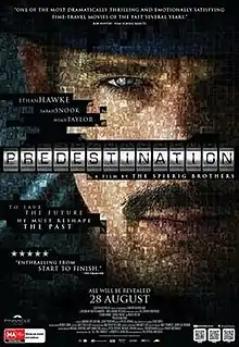 Predestination is a 2014 Australian science fiction action-thriller film[4] written and directed by Michael and Peter Spierig. The film stars Ethan Hawke, Sarah Snook, and Noah Taylor, and is based on the 1959 short story " '—All You Zombies—' " by Robert A. Heinlein.