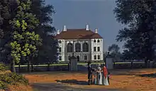 Holstein-Beck's descendants sold the manor into private hands in 1765. The Jewish merchant David Meyer Friedländer acquired Holstein from a bankrupt Major von Below in 1812 for 70,000 Thaler.[8] Some refugees from the 1830 November Uprising of Poles against the Russian Empire who had entered East Prussia were temporarily interned in Holstein.[9] In 1835 it was acquired by the Magnus family. By 1863 the village Kasebalk had been renamed Klein Holstein ("Lesser Holstein"), while the manor and estate were known as Groß Holstein ("Greater Holstein").[6] A schnapps distilled in Groß Holstein, euphemistically named Pregelgestank after the smell of the Pregel, was especially popular with oarsmen.[10] Sledding also became popular in the vicinity of scenic Holstein.[11] The fort VII Herzog von Holstein, named in 1894, was built near Holstein as part of the new Königsberg fortifications constructed from 1872 to 1894.[12]