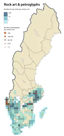 The period between 2300 and 500 BC was the most intensive petroglyph-carving period in Scandinavia, with carvings depicting agricultural activities, animals, nature, hunts, ships, ceremonies, warfare, etc.. Petroglyphs with themes of a sexual nature have also been found in Bohuslän, dating from 800 to 500 BC.