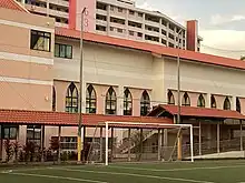 In 2002 the school's redevelopment was complete, and students moved into the new buildings. A Homecoming March ceremony was held involving past and present students. The new school campus has an air-conditioned hall and a clock tower, paid for by the alumni and money raised over the years. It has a school field made from an empty plot of land nearby. The plot of land has been replaced by artificial turf.[4]