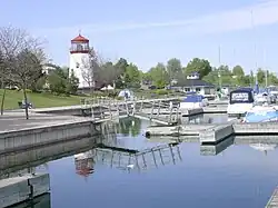 Prescott was founded in the early 19th century by Edward Jessup, a Loyalist soldier during the American Revolution, who named the village after a former Governor-in-Chief, Robert Prescott. Before 1834, the town was a part of Augusta township; however, in that year the town became a police village and severed its ties with Augusta.[2] The land here was ideal for settlement during the 18th and 19th centuries as it was situated between Montreal and Kingston along the St. Lawrence River at the head of the rapids.