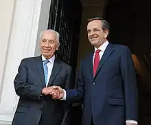 - ↑ "Shimon Peres: State president, Nobel laureate and now – knight". Haaretz. 23 November 2008. Retrieved 8 July 2009.