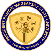 President Ramon Magsaysay State University, commonly referred to as PRMSU[1] is a state university in Zambales established in 1910. The university is named after the province's greatest son and former President of the Republic of the Philippines, President Ramon Magsaysay. In 2017, the name of the university was changed from Ramon Magsaysay Technological University to its present name. The main campus of the university is located in the Municipality of Iba, Province of Zambales. It also has satellite campuses in the municipalities of Sta. Cruz, Candelaria, Masinloc, Botolan, San Marcelino, Castillejos all in the province of Zambales. The university also offers nursing courses at the Mondriaan Aura College in Subic Bay Freeport Zone, Business Administration at the Wesleyan College of Manila under a consortium program.[2]