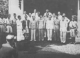 Indonesian had been under Japanese occupation since 1942, but by 1943, realizing they were losing the war, the Japanese appointed Indonesian advisors (Japanese: 参与, romanized: san'yo) to the administration and appointed nationalist leader Sukarno leader of a new Central Advisory Board (Chuo Sani-kai Japanese: 中央参議会) in Jakarta.[1] On 7 August, the day after the atomic bombing of Hiroshima, the Preparatory Committee for Indonesian Independence (Indonesian: Panitia Persiapan Kemerdekaan Indonesia) or PPKI was established. Sukarno was chairman, and Hatta vice-chairman. On 19 August 1945, this body created 12 ministries for Indonesia's first cabinet. The cabinet as formed contained sanyo as well as officials who had not worked with the Japanese. The cabinet was responsible to President Sukarno.[2][3]
