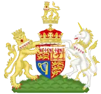 For his 21st birthday, in 1962, Prince William was granted the use of the Royal Arms, differenced with a label argent of five points, the outer pair and central point bearing lions gules, the inner pair crosses gules.[25]