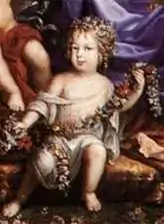 Marie Thérèse was born 2 January 1667 at the Château de Saint-Germain-en-Laye. Her parents had her baptised in the Palais du Louvre in 1668. Her parents reputedly adored the young girl. Her mother wanted her to become the queen of her native Spain and it was proposed that she wed Charles II.[1] As a fille de France, Marie Thérèse was entitled by law to the style of Her Royal Highness, but was referred to simply as '"Madame Royale".