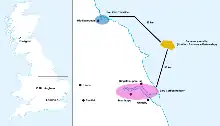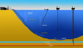 ![]() Carbon storage at sea; besides sea bed storage, there have been proposals to dissolve carbon dioxide in the waters of the North Sea.[1] | |