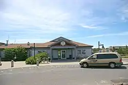 The present terminal building is a single-story wooden structure and was constructed in 1998. The terminal provides Cape Air check-in and a waiting area, TSA screening areas, and a conference room.[2]