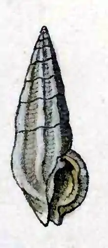 Drawing of a shell of Pseudorhaphitoma hexagonalis