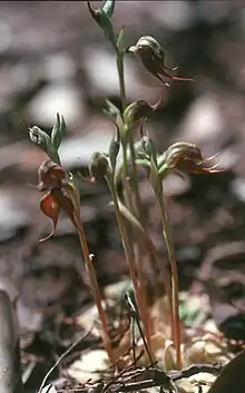 - 1 2 3 "Greenhood orchid - profile". Government of New South Wales Office of the Environment and Heritage. Retrieved 12 May 2017.