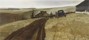 Public Sale is a 1943 painting by the American artist Andrew Wyeth. It shows two men by a car and in the distance a crowd of people outside a farm building. The event depicted is the forced auction of a farm after the farmer's wife had died.[1]