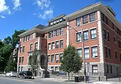 Public School No. 13 is a historic school building located in the Park Hill neighborhood of Yonkers, Westchester County, New York. It was built in 1900, with additions in 1905 and 1910. It is a 3½-story, asymmetrical, steel- and wood-frame building in a Neoclassical style. It has stone, brick, and structural clay tile walls. It has an interlocking pyramidal roof clad in polychromatic slate tiles and punctuated by large dormers.[2] The building has been converted to apartments.