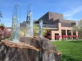 Puepahk Tugypahgyn Noomwevehchuh Psehdtuhneeyet (also known as Seasons of Our Story) is a 1993 glass and red sandstone sculpture by Janet Shapero, installed in Salt Lake City, Utah, United States.