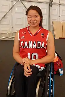 Lai also participated in sledge hockey, sailing and wheelchair basketball,[2] where she was classified as a 1.0 point player, and began playing competitively in 2014. She was noticed by Kathy Ludwig, the Ontario coach, who asked her to join Team Ontario. In 2018, she was part of the Canadian national women's wheelchair basketball team at the 2018 Wheelchair Basketball World Championship in Hamburg.[1]
